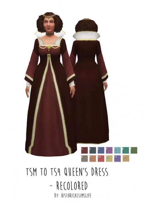 TS3 to TS4 Queen's Dress Recolors by Historical Sims Life